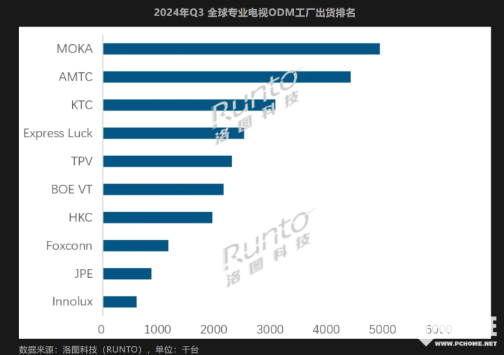 今年最高单季增幅 Q3全球电视代工市场整体出货3143.8万台